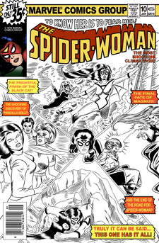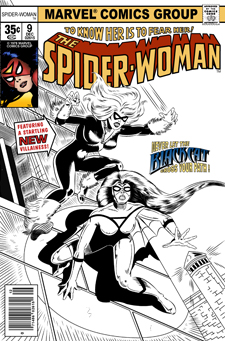 These pen and ink works are from recreations of corner boxes of Spider-Woman and Marvel Spotlight titles. Others will include recreations and re-imaginings of covers from published works from various artists as well as original works and commissioned works. Click on a cover to view a larger size layout and to read a brief story outline. Click Pg. <<#>> to move from one page to another.
